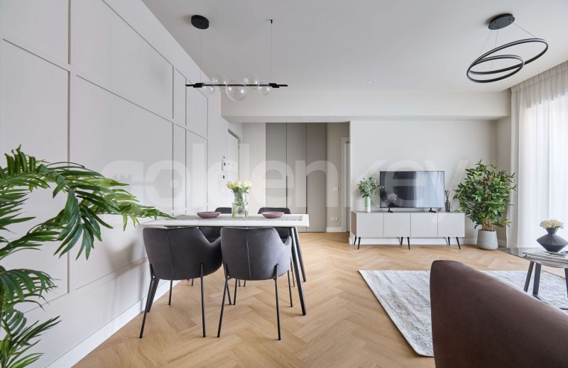 Finisajele apartamentului sunt premium, fatada ventilata ceramica, tamplarie aluminiu Schuco,lifturi Schindler, incalzire in pardoseala si parchet din lemn triplustratificat.