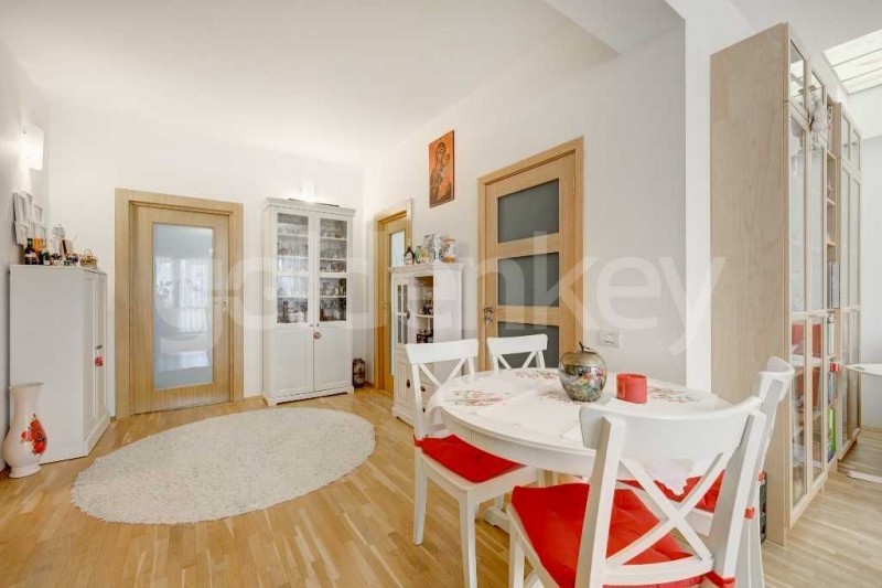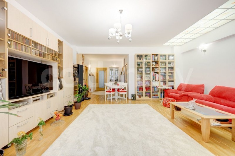 Este compus din living spatios - 46mp cu iesire pe terasa inchisa, bucatarie separata cu zona de dining, grup sanitar, dormitor matrimonial -24mp cu baie proprie si iesire pe terasa si 2 dormitoare secundare - 17mp si 14mp care impart cea de-a 2-a baie.