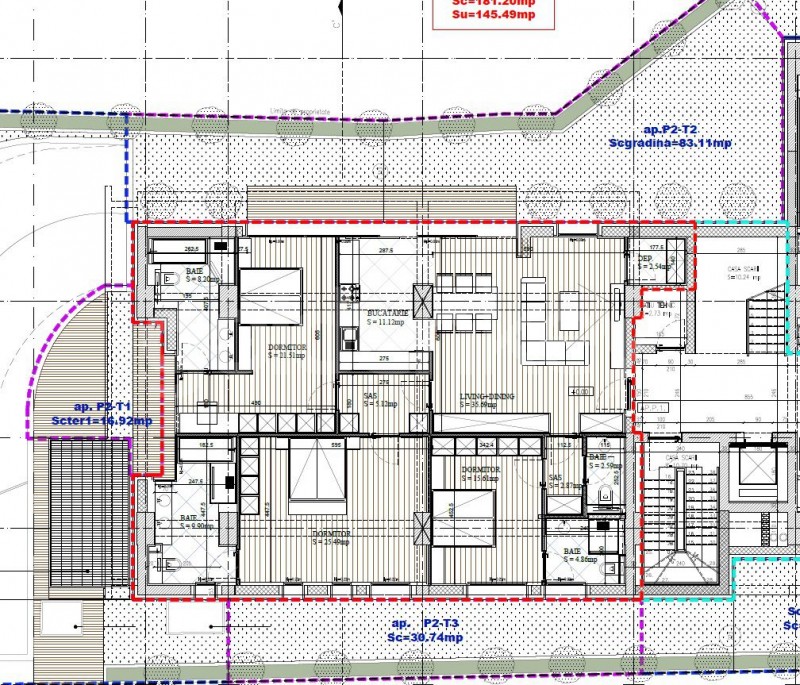Are o suprafata total construita de 313mp din care 181mp construiti ai apartamentului, 145mp utili si 131mp terase/gradina.