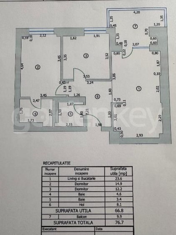 Are o suprafata totala de 77mp din care 67mp utili si 10mp terasa.