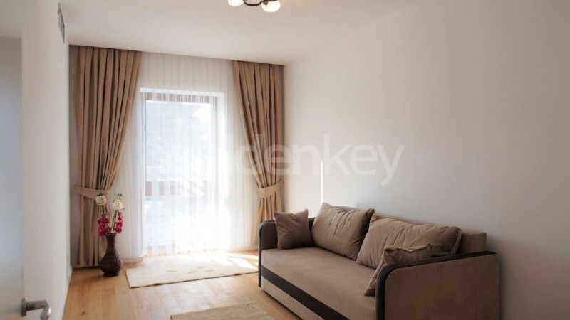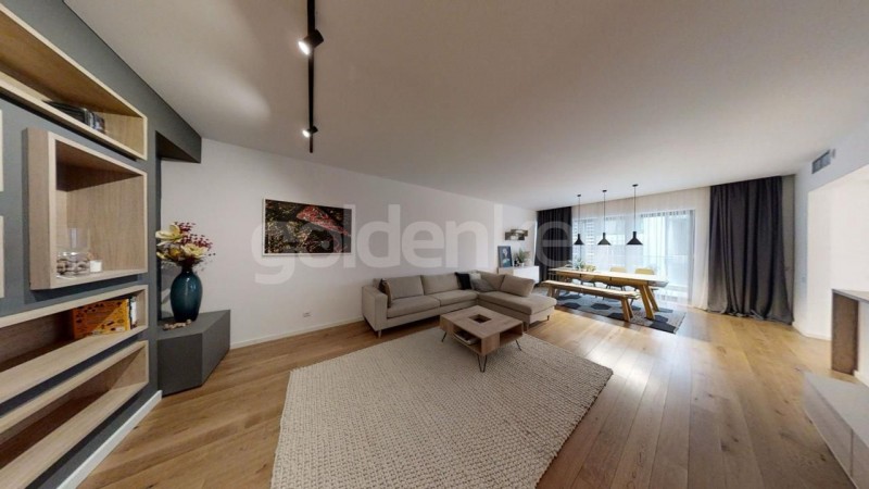 Este compus din living generos cu bucatarie deschisa si echipata si iesire pe terasa, dormitor matrimonial cu dressing si baie proprie, dormitor secundar si cea de-a 2-a baie. Este insorit in a 2-a parte a zilei, fiind orientat catre Vest.