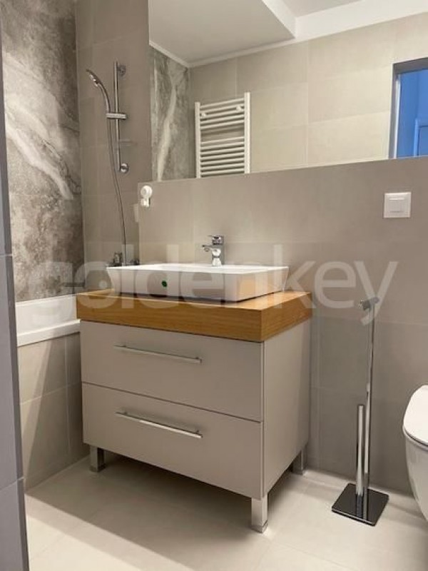 Este compus din living cu zona de dining, bucatarie complet echipata, dormitor matrimonial cu baie proprie, dormitor secundar cu baie secundara.