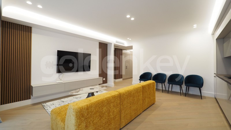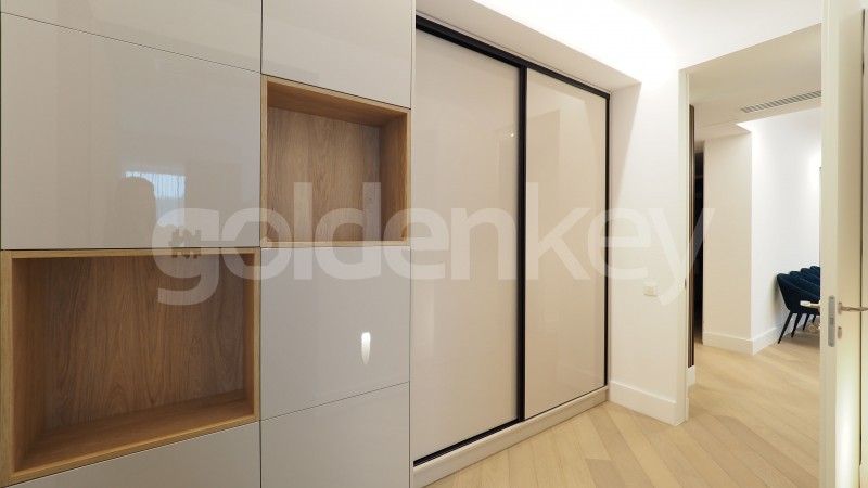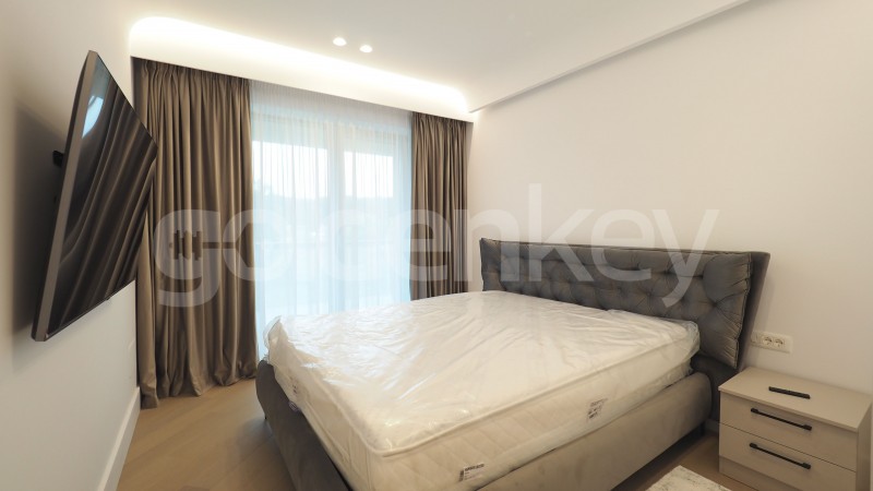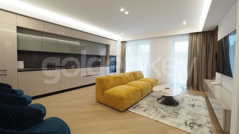 Este compus din living cu zona de dining si iesire pe terasa, bucatarie deschisa si echipata, dormitor matrimonial cu dressing si baie proprie, dormitor secundar si cea de-a 2-a baie.