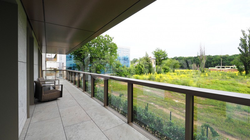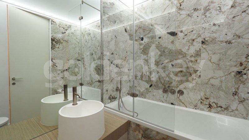Imobilul beneficiaza de fatada ventilata, tamplarie Schuco, usi interioare Filomuro, parchet din lemn cu incalzire in pardoseala, placari ceramice Florim si este potrivit pentru rezidenta.