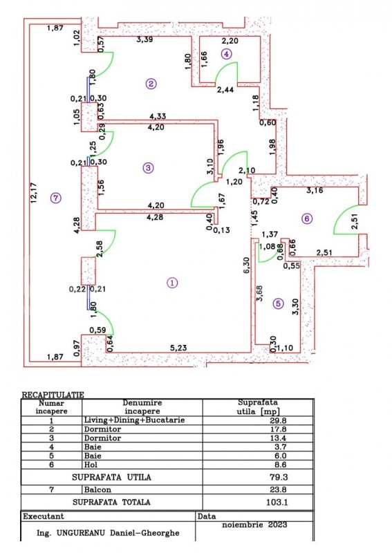 Are o suprafata totala de 103mp si 79mp utili.