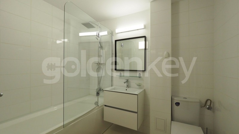 Este compus din living cu zona de dining si terasa generoasa, bucatarie separata complet echipata, dormitor matrimonial cu baie proprie si dormitor secundar cu baie secundara.