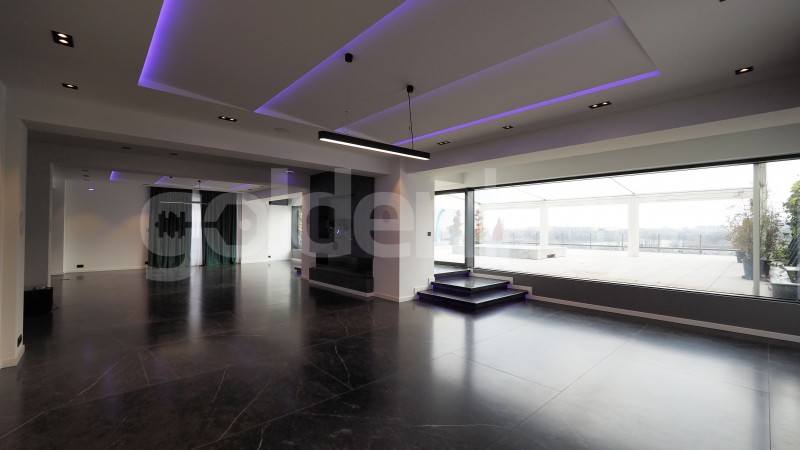 Este compus din living generos de 120mp cu iesire pe terasa si spatii mari vitrate, bucatarie inchisa si complet echipata, grup sanitar, dormitor matrimonial cu baie proprie, 2 dormitoare ce impart 1 baie si camera tehnica.