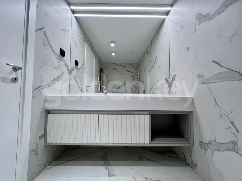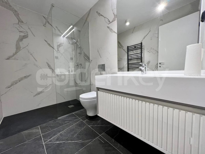Este compus din living cu iesire pe terasa, bucatarie complet mpoobilata si utilata, grup sanitar, dormitor matrimonial cu baie proprie si dressing, 2 dormitoare secundare ce impart 1 baie.