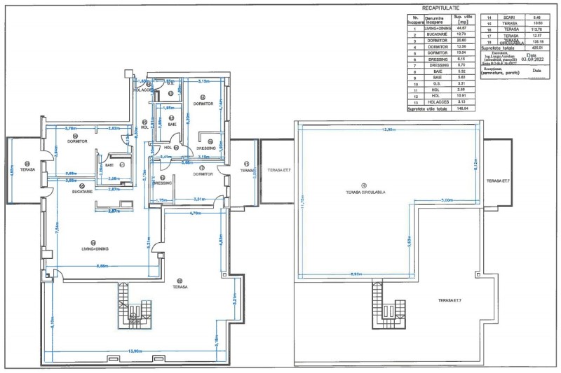 Are o suprafata totala de 425mp, 145.5mp utili si 272mp terase.