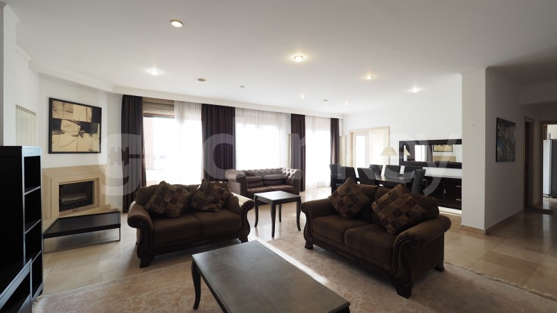 Are living spatios cu semineu si zona de dining, bucatarie separata complet echipata, grup sanitar, 2 dormitoare matrimoniale cu bai proprii si dressinguri, 2 dormitoare secundare care impart o baie cu dus, holuri cu dressinguri si spalatorie.