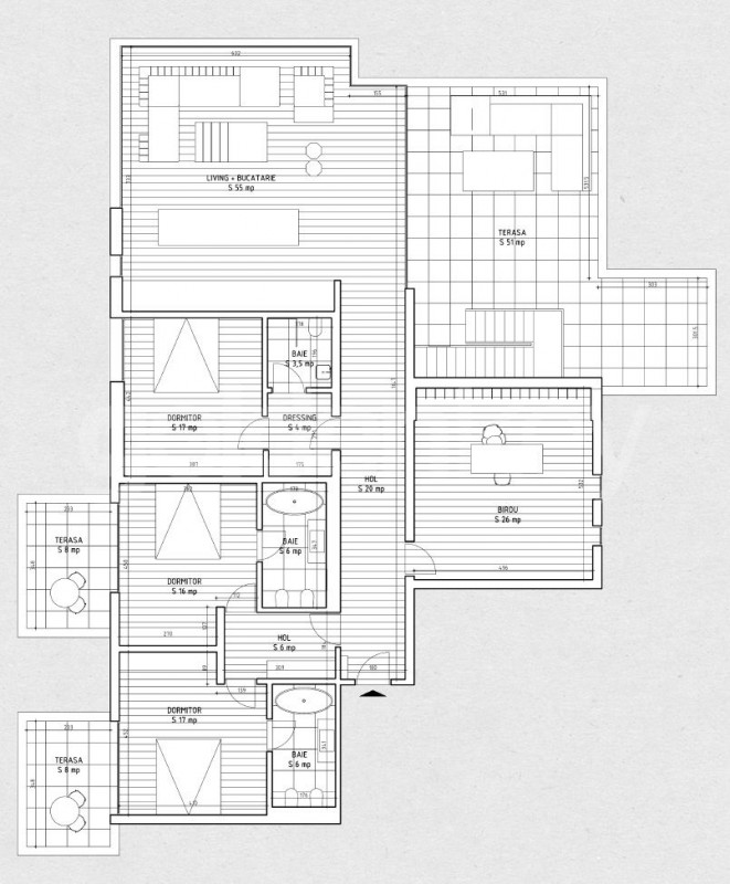 Are o suprafata totala de 390mp, 178mp utili si 212mp terase.