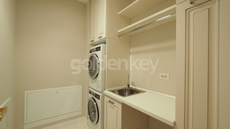 Este compus din living generos cu zona de dining si iesire pe terasa, bucatarie separata complet echipata cu iesire pe terasa, dormitor matriomonial cu dressing si baie proprie, dormitor secundar, baie si spalatorie.