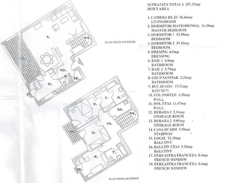 Are o suprafata totala de 207mp din care 165mp utili.