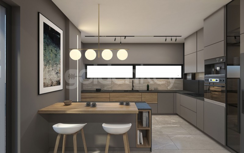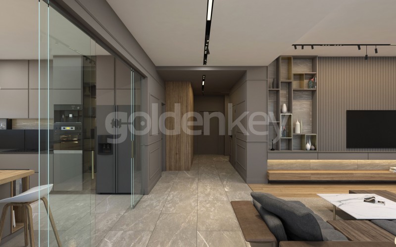 Apartamentul este compus din living amplu cu zona de dining, terasa + piscina de 22 mp , bucatarie separata, grup sanitar, dormitor matrimonial cu baie si dressing si 2 dormitoare secundare cu cate o baie.
