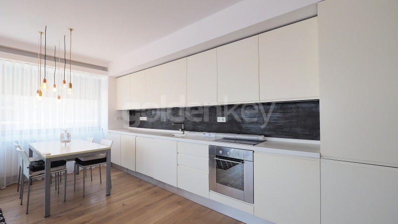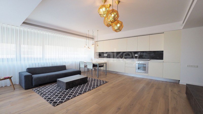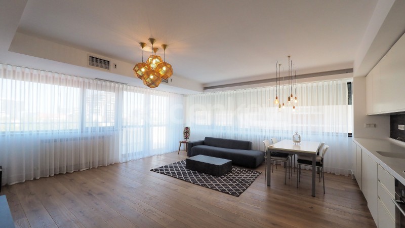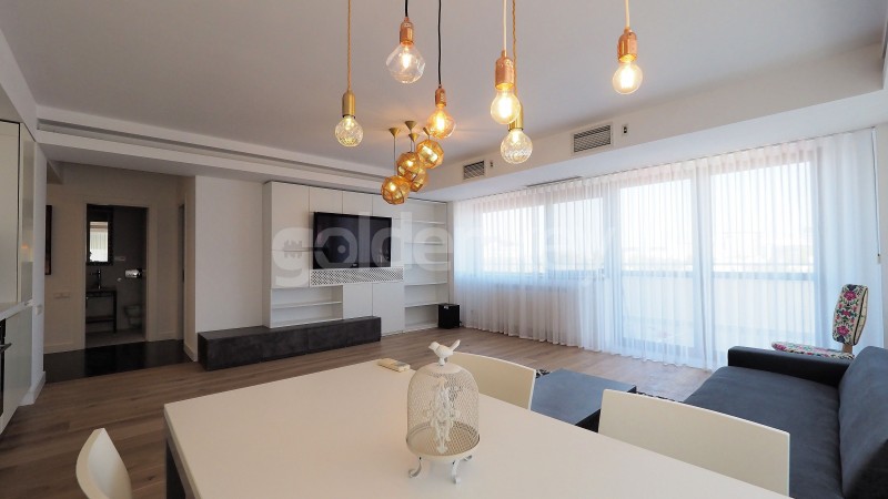 Este compus din living generos cu zona de dining si bucatarie deschisa complet echipata, terasa, dormitor matrimonial cu dressing si baie proprie, dormitor secundar si baie cu cada.