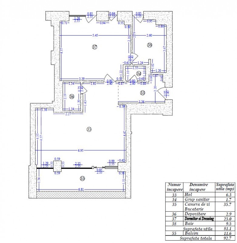 Are o suprafata construita de 110mp dintre care 81mp utili si 12mp terasa.