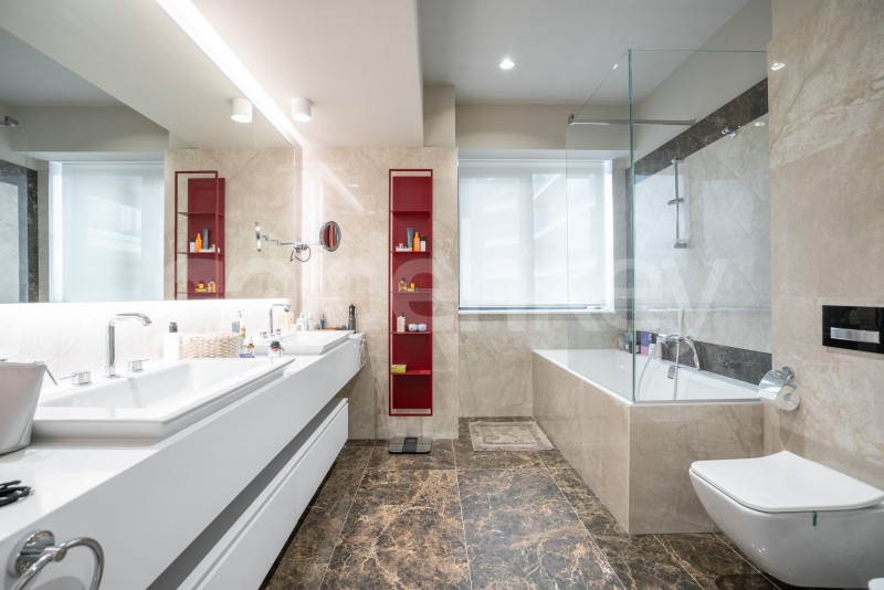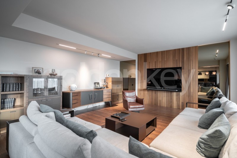 Este compus din zona de zi ampla de 51mp, terasa, bucatarie 15mp, dormitor matrimonial 33mp, terasa si baie en-suite si 3 dormitoare secundare (16/17/18mp) cu 3 bai.