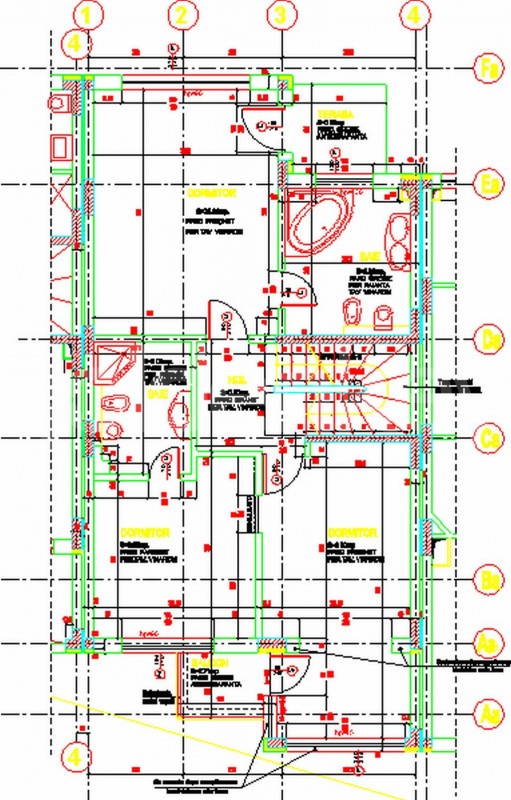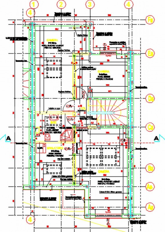 La etaj este dormitorul matrimonial cu baie proprie si 2 dormitoare care impart o singura baie.