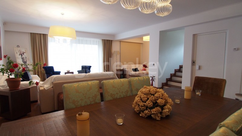 Vila duplex cu finisaje moderne si lift propriu este dispusa pe 3 nivele se afla intr-un complex rezidential din zona Pipera unde beneficiaza de securitate, loc de joaca pentru copii si garaj subteran.