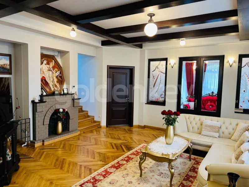 Finisajele si instalatiile sunt noi, o parte au fost restaurate (vitralii, semineu). Este mobilata si utilata complet nou.