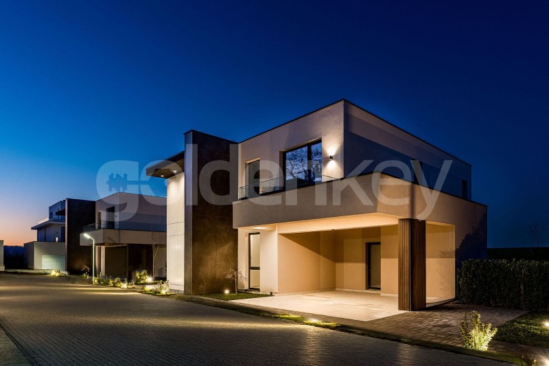 Situata in zona Pipera, intr-un complex rezidential modern cu sala fitness si mini teren de golf, la mica distanta de Scoala Americana si Olga Gudynn, aceasta vila cu 6 camere este dispusa pe 2 nivele P+1 si a fost construita pe un teren de 647mp.