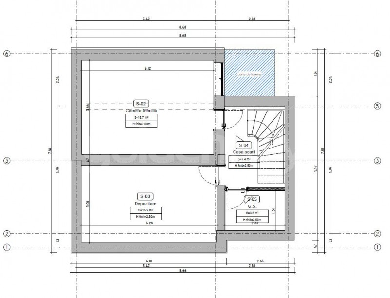 Subsolul se compune din camera tehnica, spatiu depozitare si grup sanitar.
