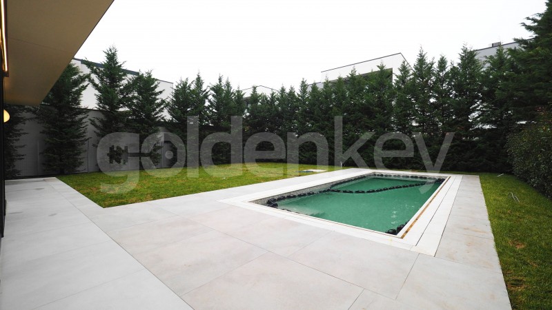 Vila va beneficia de finisaje de inalta calitate: fatade ventilate, tamplarie aluminiu cu pereti cortina (FW50), usi glisante (ASE 80HI) si ferestre (AWS70) cu profile Schuco si geam tristrat, piscina cu canal perimetral, placare cu placi ceramice la parter si padoseala flotanta la terase etaj cu placi ceramice, usa garaj Hormann, usi interioare filomuro, parchet stejar stratificat, clasa A, fara noduri, placare grupuri sanitare cu placi ceramice, obiecte sanitare (cazi de baie New Alma - Noken, mobilier lavoare si lavoare Decosan, baterii cada Treemme), centrala temica murala in condensatie - model Viessman Vitodens 200 - 49Kw, boiler Galmet 300 l, instalatie incalzire in pardoseala -sistem Tece Germania, sistem automatizare casa inteligenta TapHome, sistem irigatii, etc.