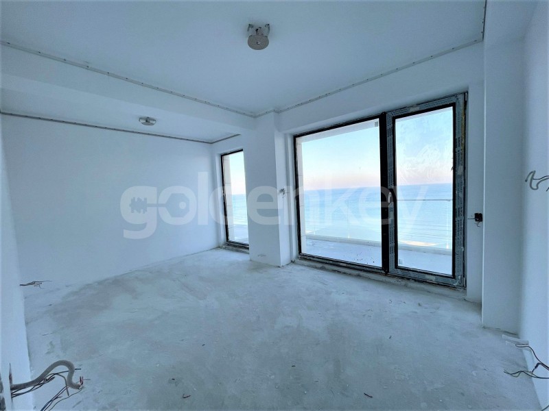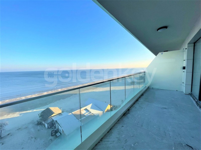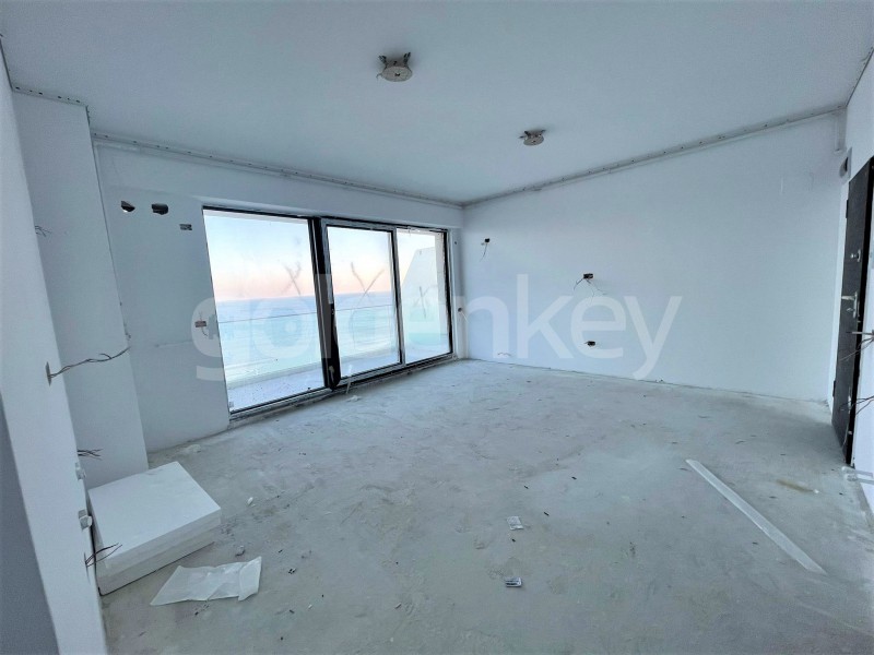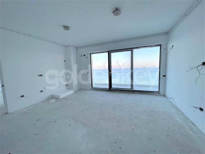 It consists of a living room with a front view towards the sea and access to the terrace, open kitchen, 1 bedroom with front view to the sea, secondary bedroom and 2 bathrooms. The apartment is sold without finishes.