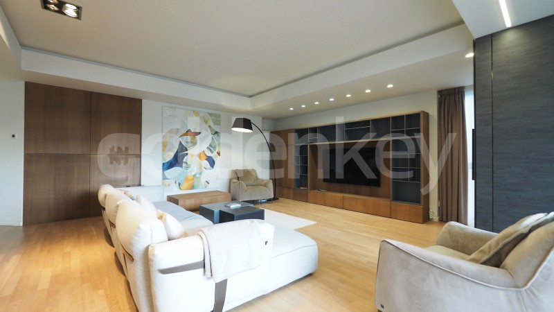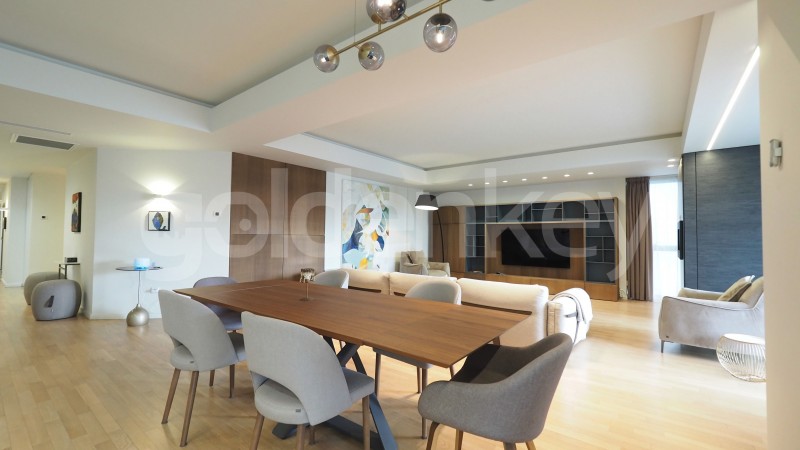 It consists of living room with generous dining room of 90sqm, open and fully equipped kitchen of 17sqm, terrace 18sqm, guest toilet with shower, master bedrooms with en-suite bathroom and dressing, 2 bedrooms which have been transformed into a children's room, dressing and laundryroom.