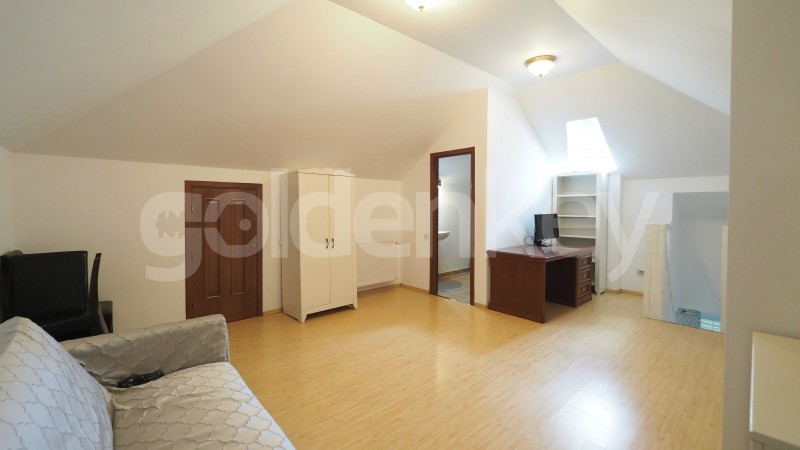The attic is an open space with bathroom and room for storage.
