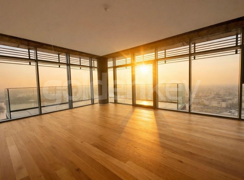 Located on the shores of Lake Floreasca, in the newest building in the area, this 4-room apartment is located on the 19th floor of 2Ug+Gf+25 and benefits from the best view in Bucharest. It is sunny all day long due to the large glazed areas and the south-west orientation.