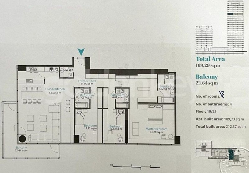 The total area is 212sqm of which 170sqm usable plus 23sqm terraces.