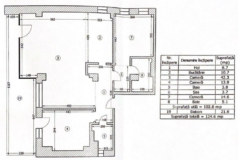 This apartment has a total area of 149sqm, out of which 105sqm usable and 19sqm terrace.