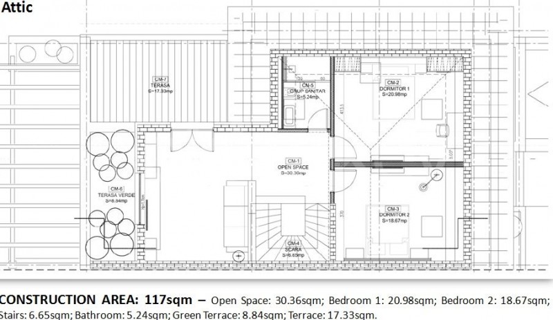 In addition to that, the villa has a generous attic that can be arranged by each resident as leisure room, fitness room 2 bedrooms, bathroom and a terrace of 17 sqm.