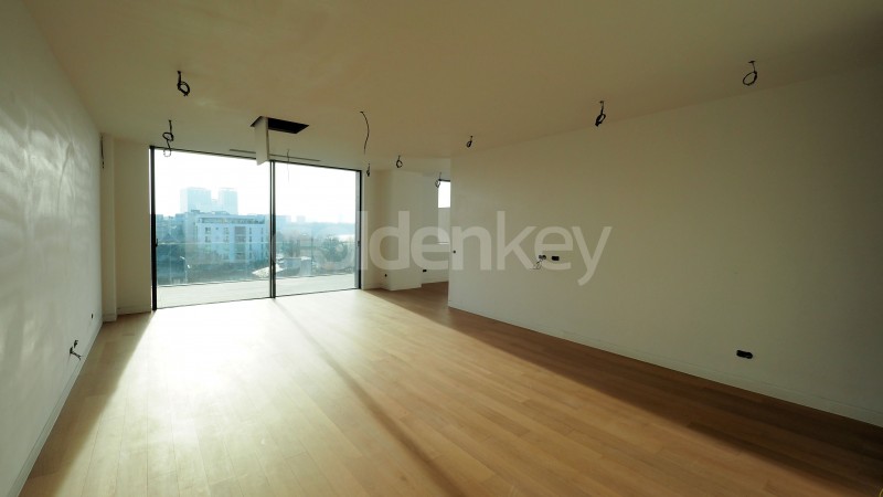 It consists of a generous living room with dining area, kitchen, 17 sqm terrace, toilet, master bedroom with private bathroom and dressing room, and secondary bedroom with bathroom and terrace 10sqm. Can be transformed in 3 bedrooms.