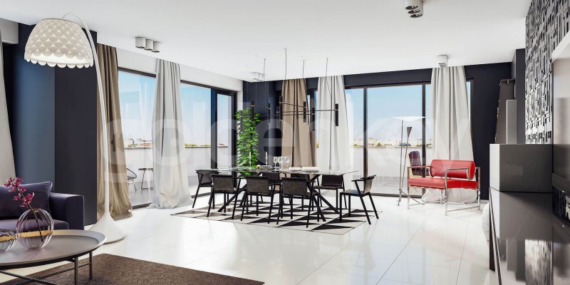 It is composed of bright living room with large glazed surfaces, dining area, separate kitchen, master bedroom with dressing room and en-suite bathroom, 2 bedrooms that share 1 bathroom and storage space. All the rooms have terrace exit.