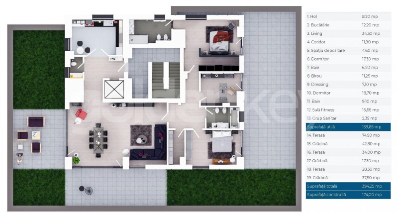 It has a built surface of 174sqm, 160sqm usable and 234sqm terraces.
