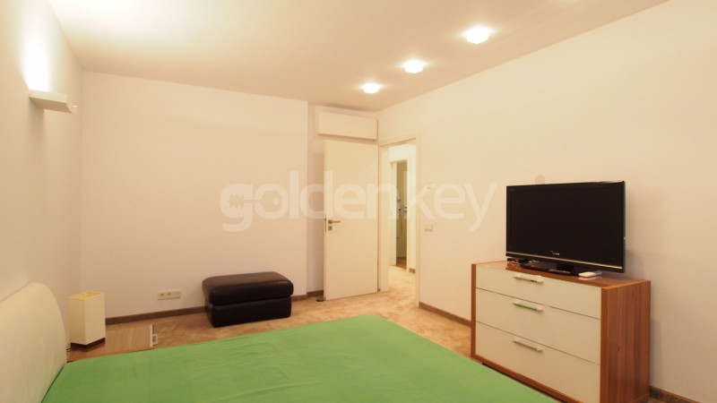 Consists of large living room with exit on the terrace, fully equipped kitchen, guest toilet, master bedroom with en suite dressing room, bathroom and terrace and 2nd bedroom with dressing, bathroom and terrace. Benefits of double exposure, the living room has South -West orientation and the bedrooms have orientation East. Finishes are high quality: oak flooring, Schuco windows, ITC Belgium carpets, Laufen-Germany sanitary.