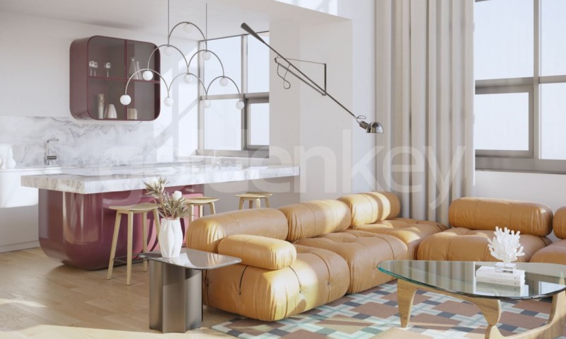 The 5th floor consists of a bright living room with dining area and exit to the terrace, fully equipped open kitchen, bathroom, master bedroom with dressing room.